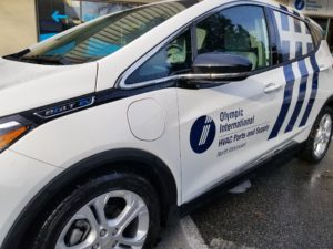 Check out our new electric vehicle at Olympic International HVAC Parts and Supply. 348 Harbour Ave. North Vancouver 604-904-3210.